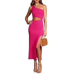 PRETTYGARDEN Women’s 2025 Summer Midi Dress Sleeveless One Shoulder Cutout Side Slit Bodycon Dresses