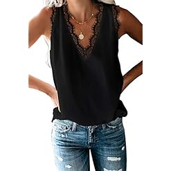 BLENCOT Women Lace Trim Tank Tops V Neck Fashion Casual Sleeveless Blouse Vest Shirts