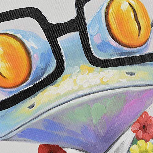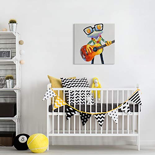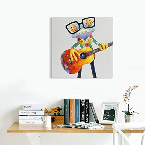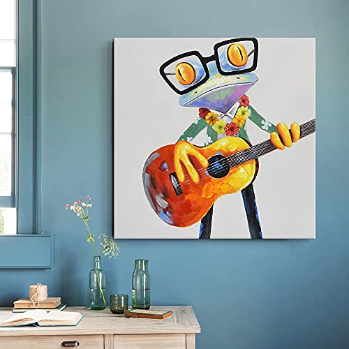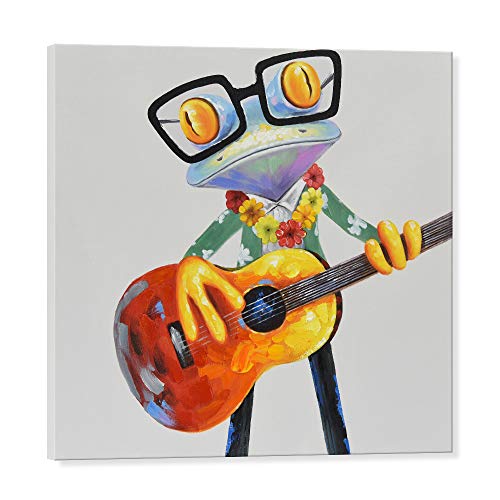 JAPO ART Hawaiian Frog Play Guitar Funny Animal with Glasses Canvas wall art 100% Handpainted Frog Painting Pictures Wall Decor for Home Kidroom Bedroom Livingroom 24x24Inch